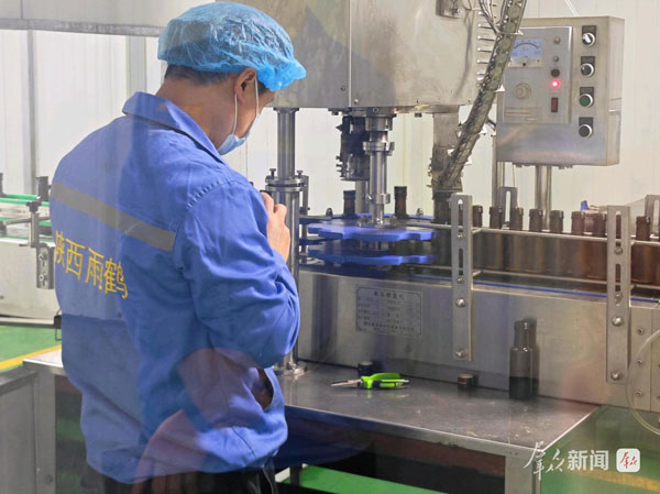 10月10日,在陜西雨鶴生物科技有限公司生產車間,工人全神貫注盯著灌裝生產線上的核桃油。“公司以高端食用油產業化經營為主,擁有壓榨、精煉、全自動化灌裝生產線。”楊剛平介紹,“用于生產核桃油的核桃主要是洛南本地的老樹核桃。洛南核桃經常不夠用,我們還從新疆等地收購。”